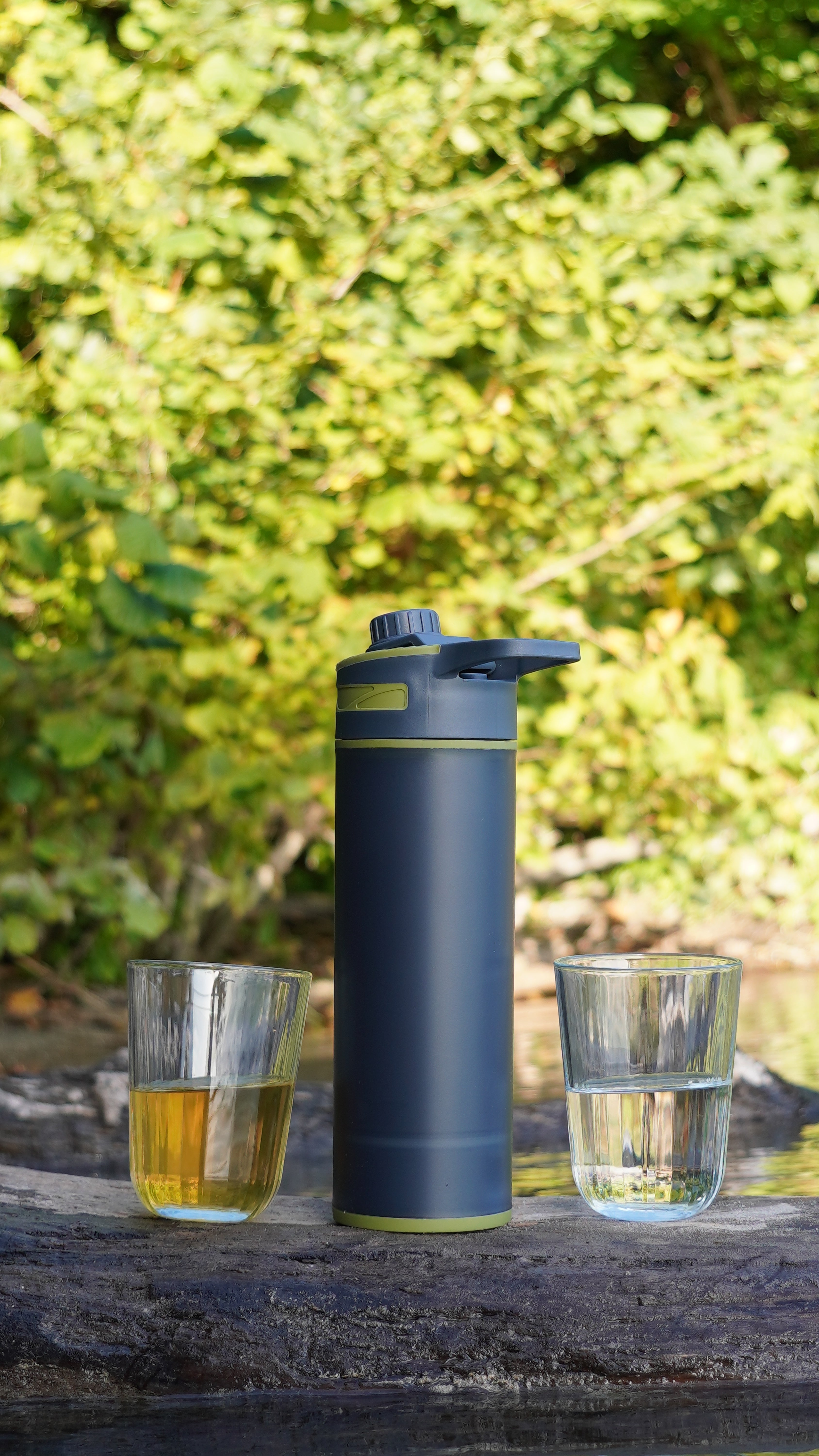 Flasken fjerner partikler og sedimenter, der kan være synlige i vand eksempelvis fra naturen.
